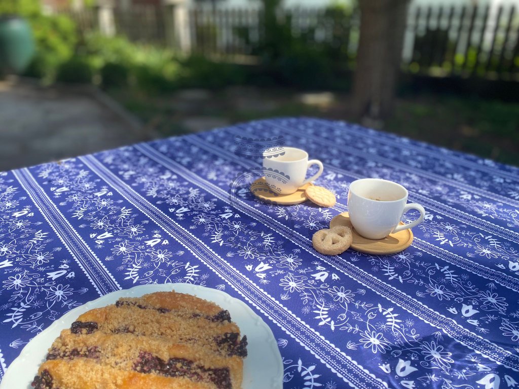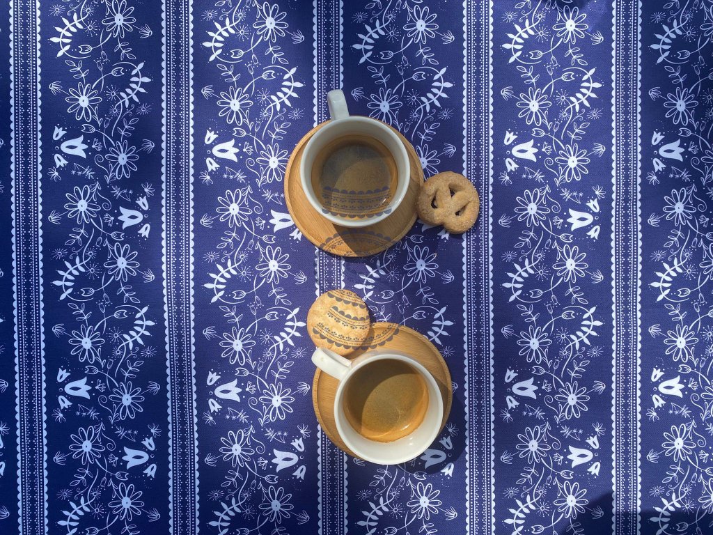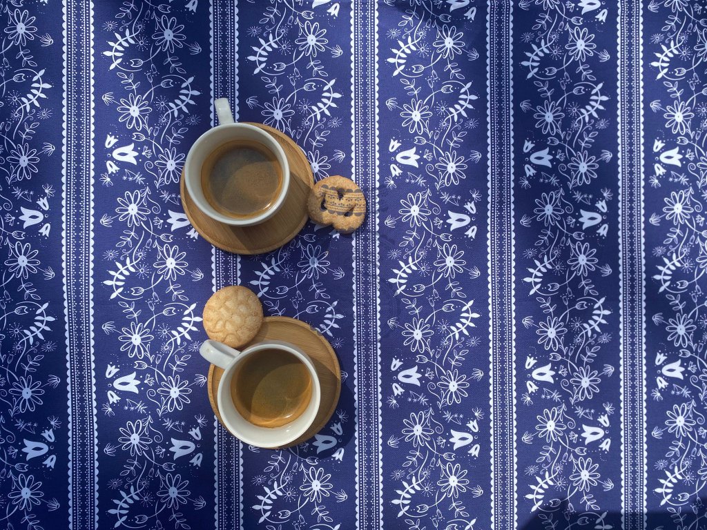 Náš autorský motiv na 100% bavlnu přenesla tiskárna ze Dvora Králové nad Labem. Kromě něj urazila látka od nápadu až po výrobu míň jak 40 km. Nákupem ubrusu tak vedle sociálně znevýhodněných lidí podpoříte i podnikání v Královéhradeckém kraji.
