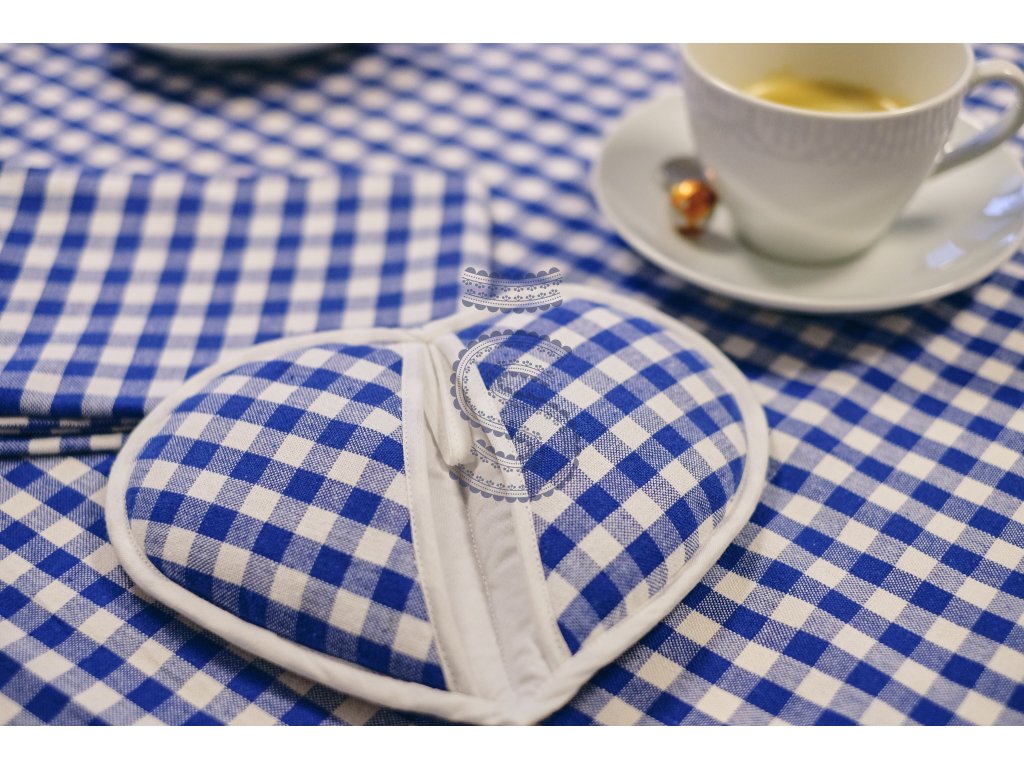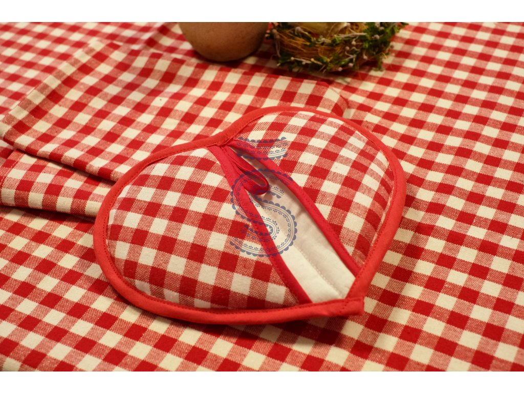 1x kostičkovanou kuchyňskou chňapku ve tvaru srdce ze 100% indické bavlny